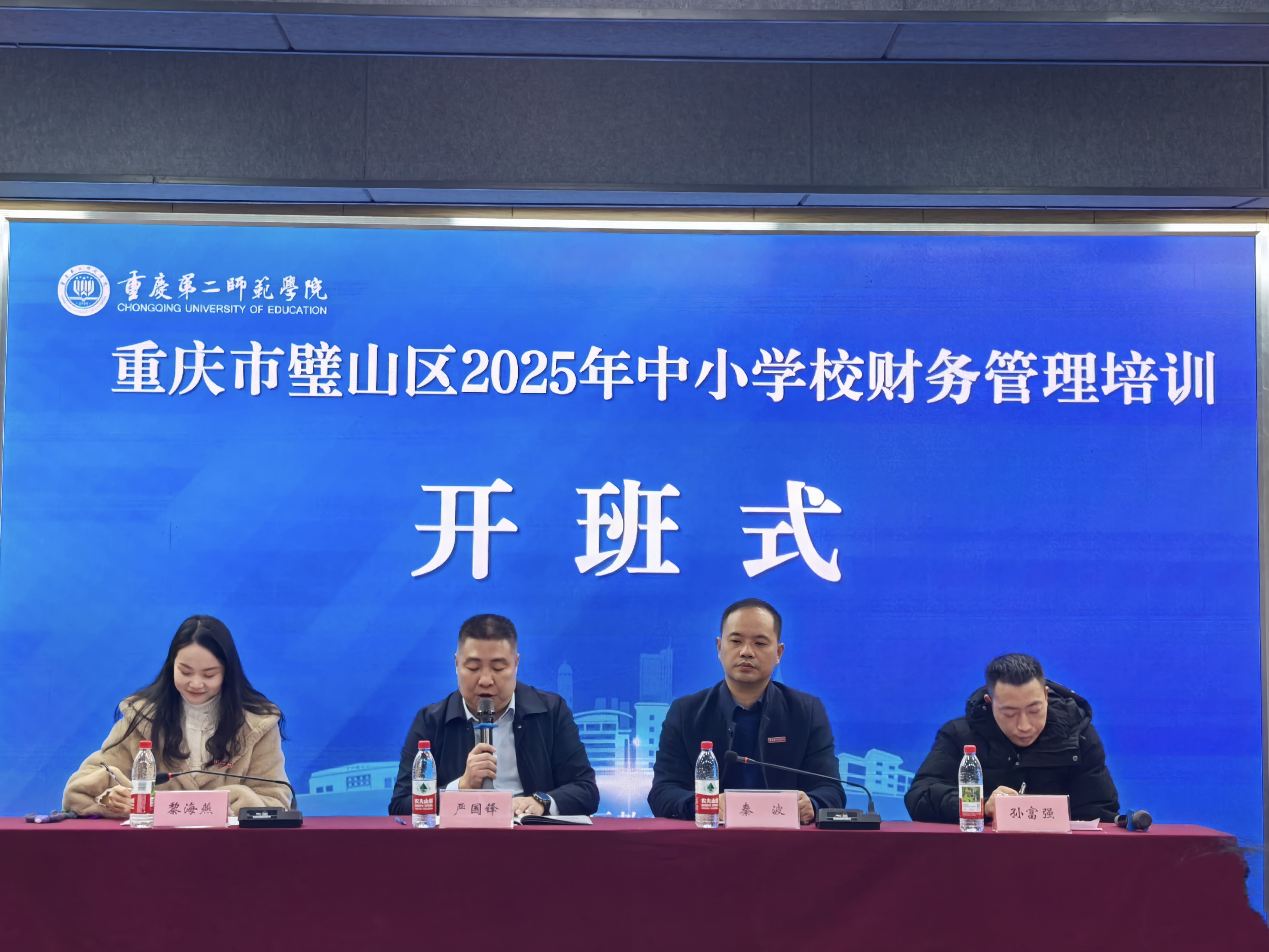 2025年11月26—28日,2025年璧山区教育系统财务人员(含食堂财务)培训在重庆市第二师范学院举办。重庆第二师范学院继续教育学院书记、院长秦波,区委教育工委委员、区教委副主任严国锋出席开班仪式并致辞。