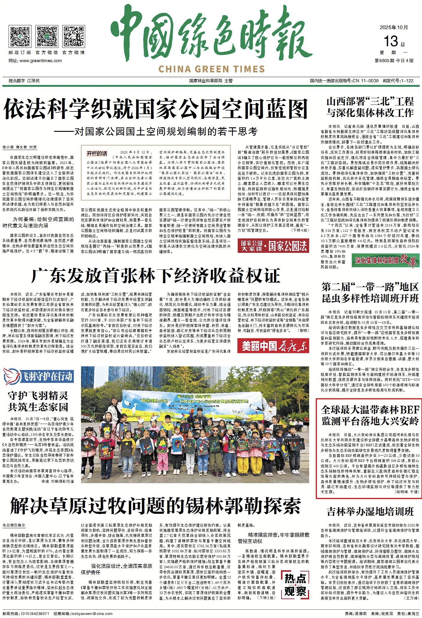 日前,大兴安岭林业集团公司塔河林业局与东北林业大学共同开发建设的全球最大温带森林生物多样性与生态系统功能监测平台(BEF)正式建成,标志着全球生物多样性与生态系统功能研究在景观尺度取得重要突破。当前国际BEF样地面积多在5—25公顷,少数达到50公顷。大兴安岭塔河BEF平台样地面积506公顷,其核心观测区400公顷。平台有望揭示低温胁迫区多样性维持生态系统韧性的特殊机制,重新定义高纬度森林在碳汇稳定性等方面的角色,并为大兴安岭森林可持续经营与保护、森林质量精准提升、生物多样性保护、林下经济开发与利用、碳汇市场建设、生态环境监测与评价等提供了有力技术支撑。