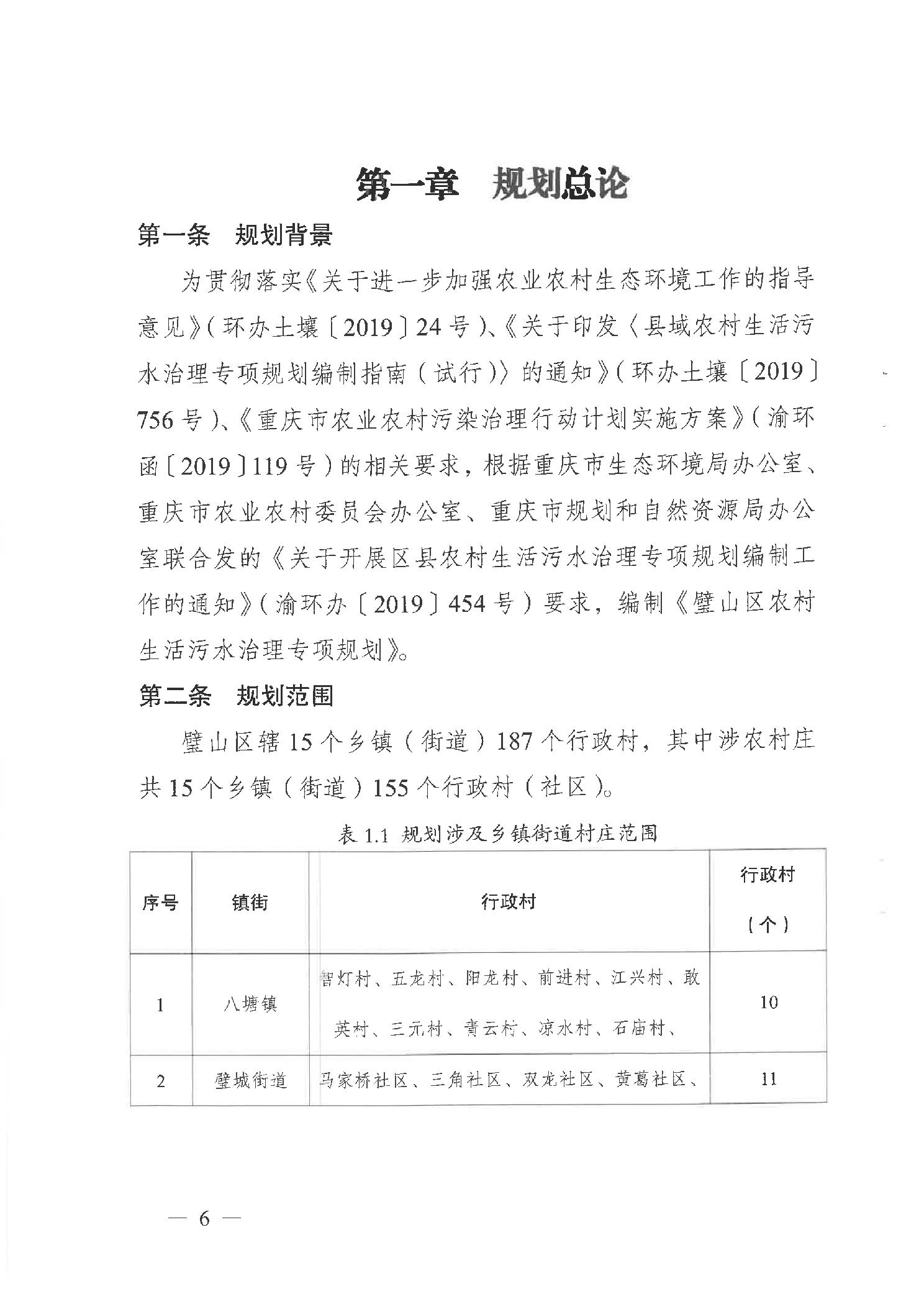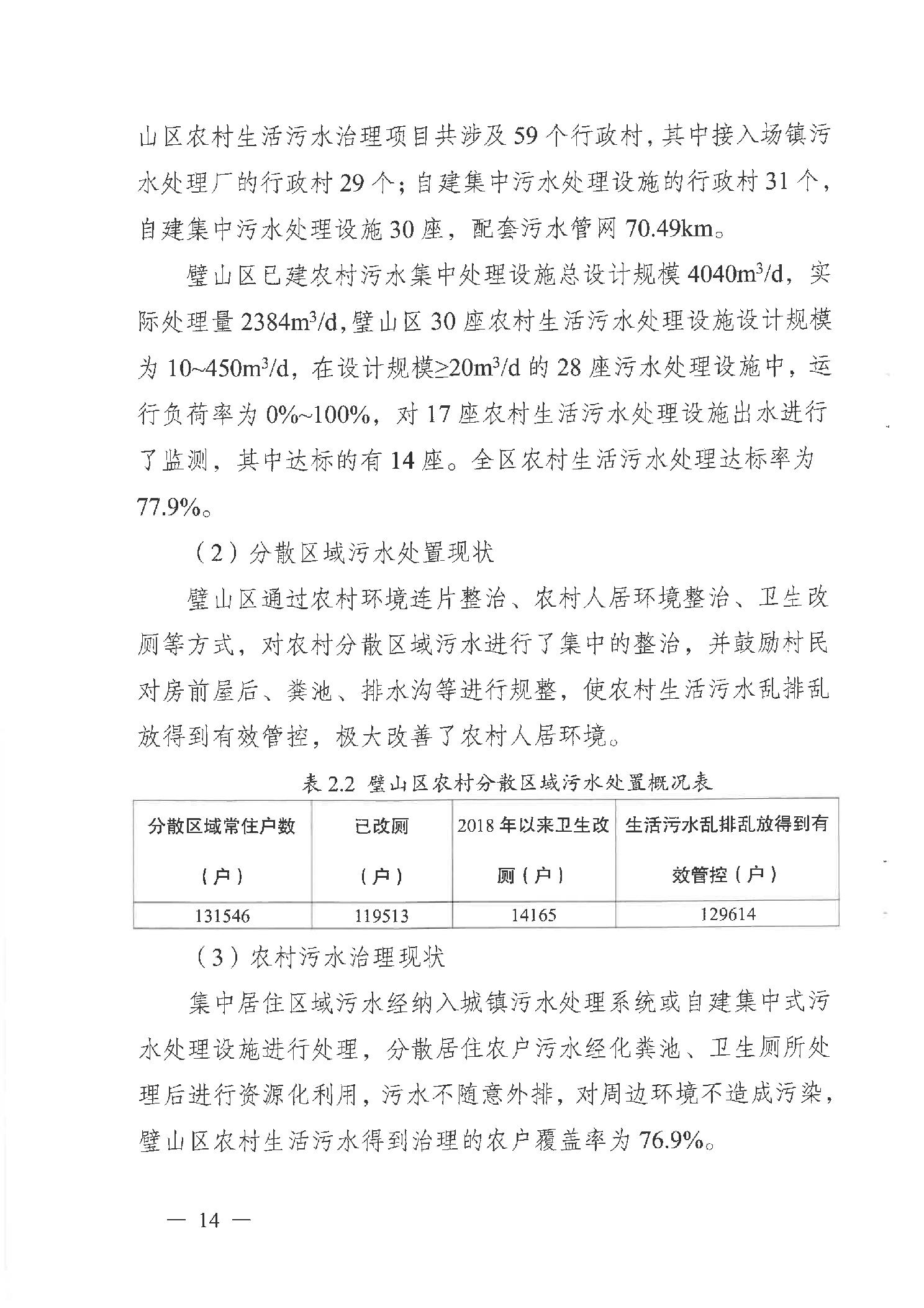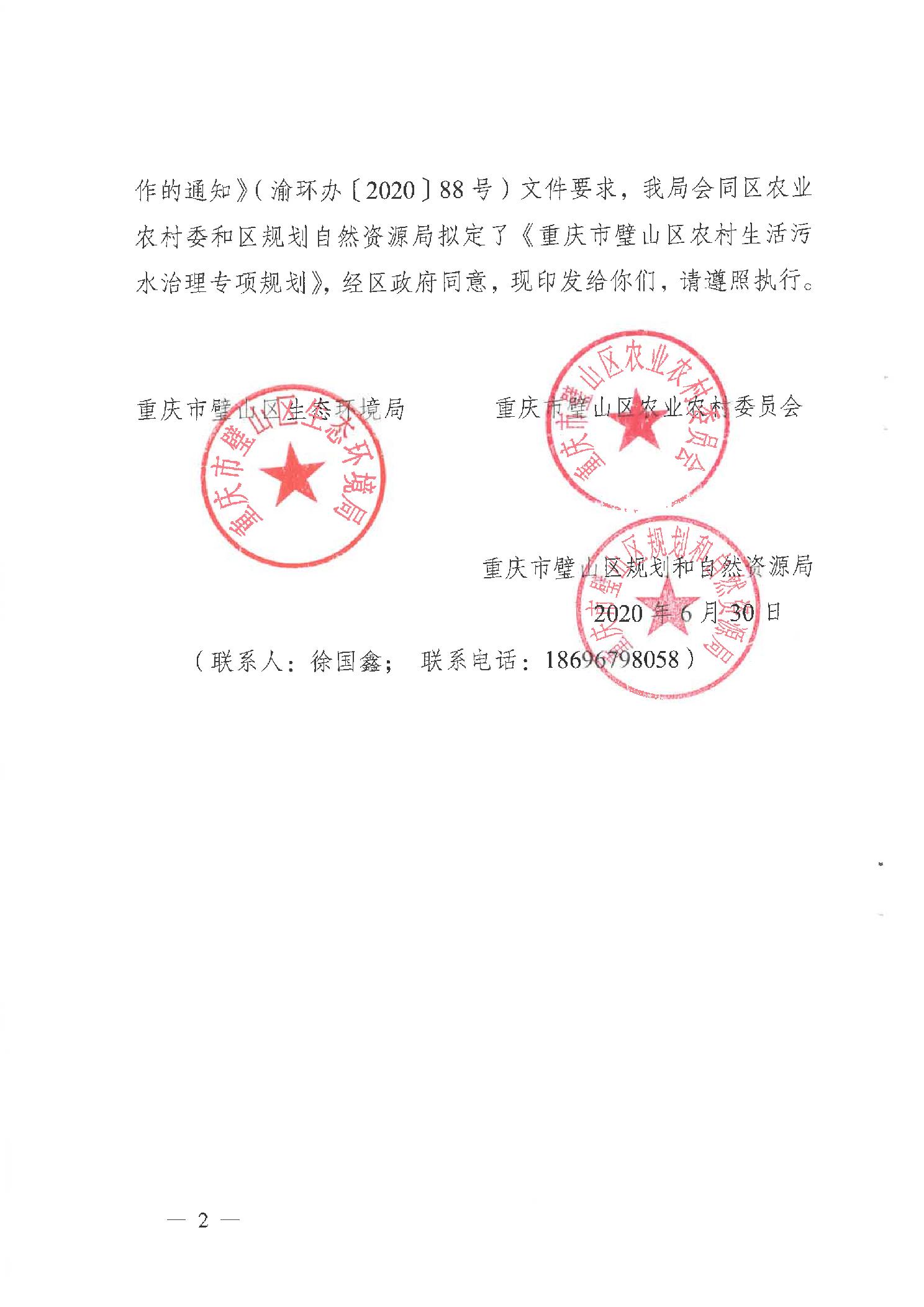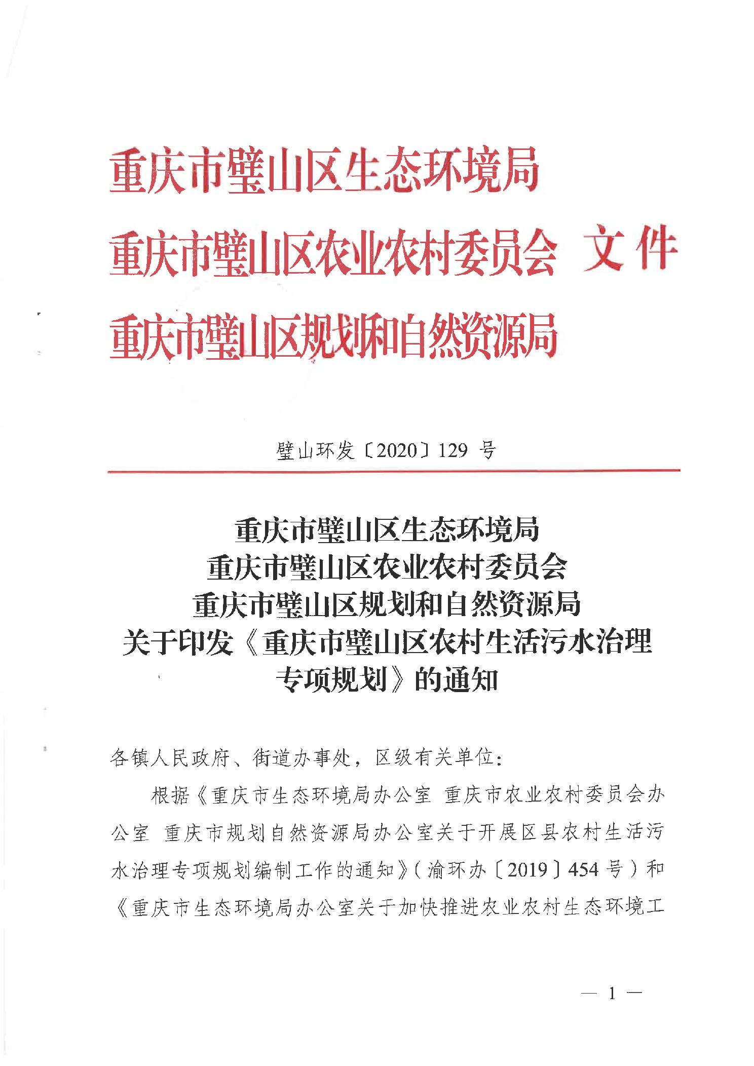 关于印发《重庆市璧山区农村生活污水治理专项规划》的通知
