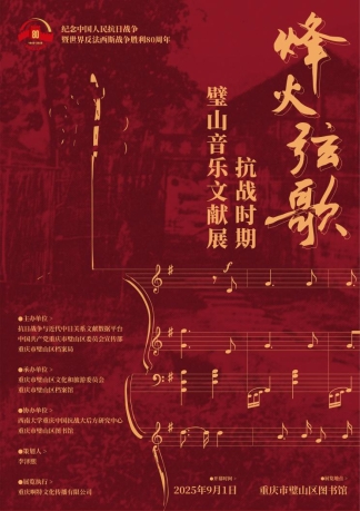 2025年9月1日,“烽火弦歌——抗战时期璧山音乐文献展”在璧山区图书馆正式启幕。本次展览由抗日战争与近代中日关系文献数据平台、中共璧山区委宣传部、璧山区档案局主办,璧山区文化旅游委、璧山区档案馆承办,西南大学重庆中国抗战大后方研究中心、璧山区图书馆协办。