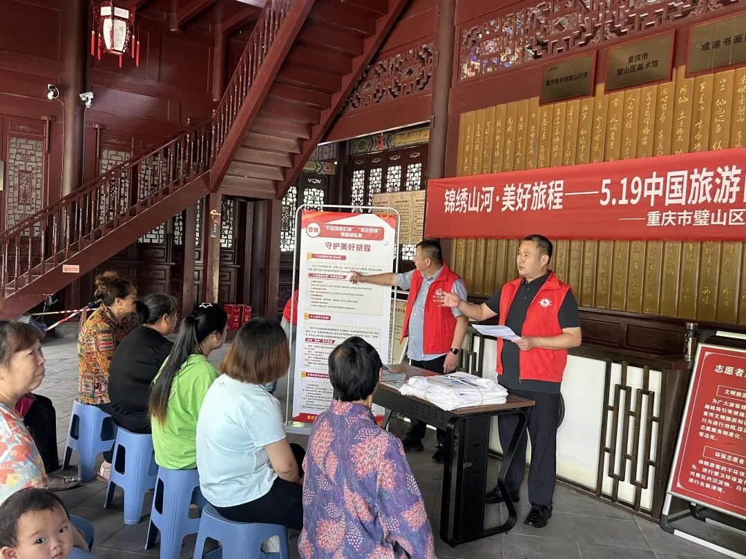 活动现场,区文化旅游委宣讲“旅游行业导游乱象、强制消费等问题专项整治工作”,普及 “低价游”、 “非法会销”等常见旅游消费陷阱,为市民介绍维权途径和法律依据,现场接受群众旅游投诉、咨询。文旅志愿者主动热情为广大市民提供志愿服务,发放《文明旅游宣传单》、《文明旅游倡议书》、璧山旅游地图等宣传材料200余份,并向市民游客介绍“中国旅游日”的来历,引导游客安全旅游、文明出游、绿色出行。通过此次活动,提高了市民游客的法律意识及旅游消费过程中自我保护和依法维权的能力,增强了全民关注旅游、参与旅游、支持旅游的浓厚氛围。
