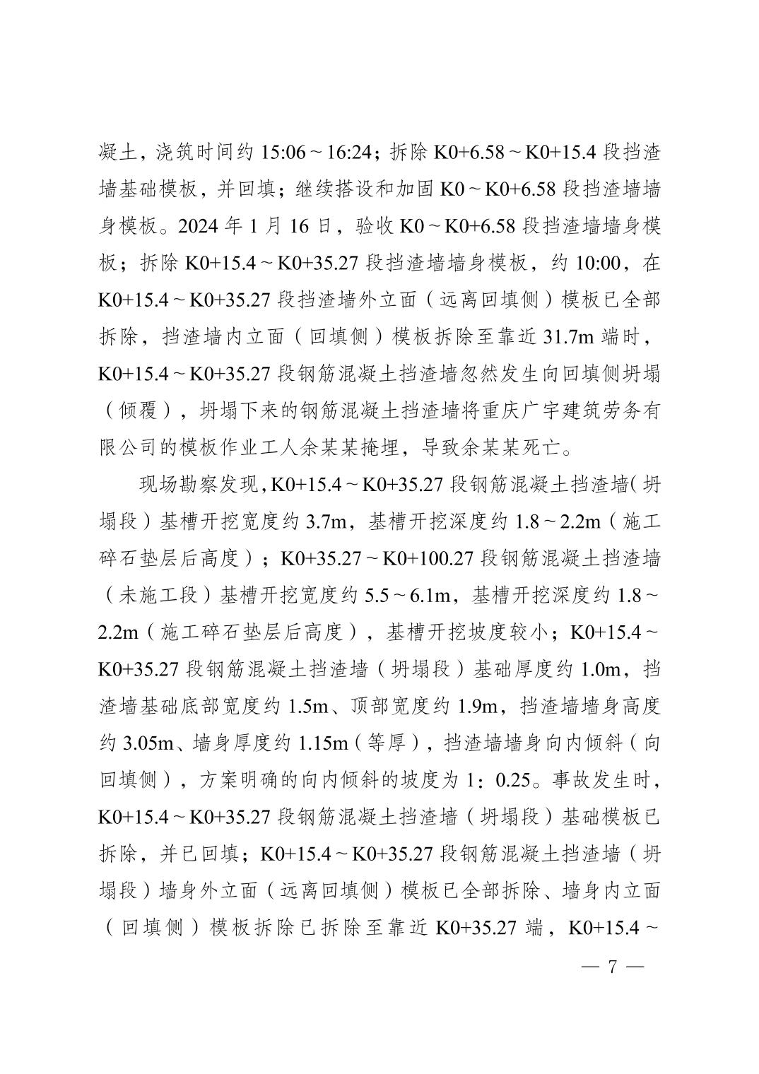 重庆广宇建筑劳务有限公司“1·16” 一般坍塌事故调查报告