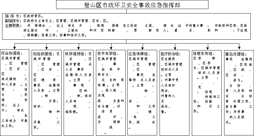 按照统一指挥、分类管理、属地为主的原则,建立应对璧山区市政环卫安全事故的指挥体系。