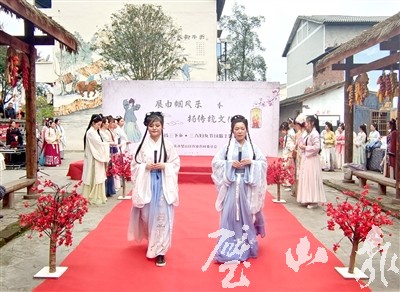 “中国有礼仪之大,故称夏;有服章之美,谓之华……”3月8日上午,在七塘镇幺滩院子,白墙灰瓦的民居环绕四周,色彩缤纷的灯笼、粉嫩的桃花点缀其中,数位衣袂飘飘的“仙子”轮番走出。由区农业农村委主办的农业科技三下乡·三八妇女节汉服主题活动在这里举行。