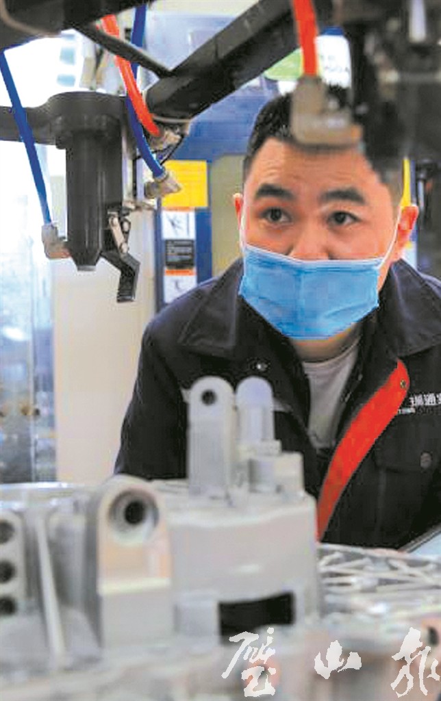 如今,4条机器人生产线在程彬和团队的努力下已经有条不紊地运行起来。过去耗费人力的重型零件加工搬运现在只需要对“调控器”输入几行代码,便能交由机器人独自完成。不仅产量增加了10%,生产效率也得到了极大提高。“学习了才会了解机器人生产的精妙和便利,目前我们还需要通过更深入的学习探索,让机器人加工更复杂的零件。”面对已取得的进展,程彬谦虚道。