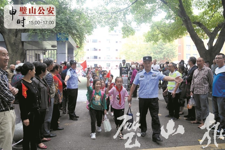 日入,酉时,正是学校放学时刻,他们早早地在人流密集处建起了人墙,确保每个孩子放学安全。
