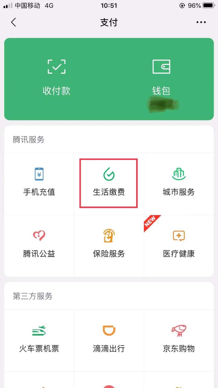 打开微信APP,进入支付功能,选择“生活缴费”。
