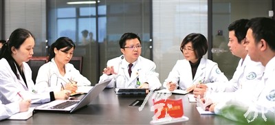 陈国涛(中)和同事讨论病例