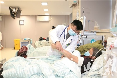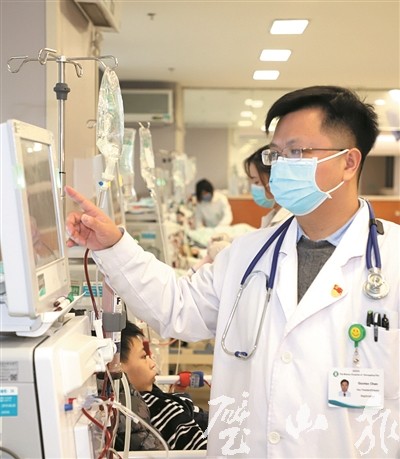 陈国涛正为做透析的病人检查身体