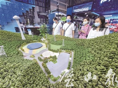 8月23日,璧山展馆,市民参观空间太阳能电站沙盘。