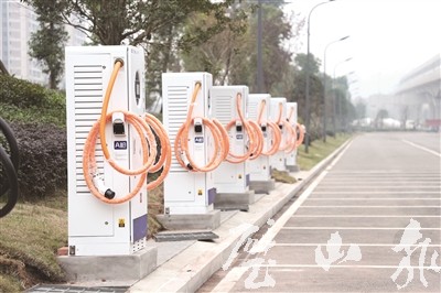 地铁1号线璧山站停车场,新增的新能源汽车充电桩将为市民绿色出行提供保障。