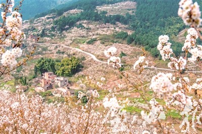 ▶ 3月1日,八塘镇凉水村樱桃谷内漫山遍野的樱花美如画。 (记者 杨文广 摄)