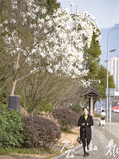 3月2日,双星大道的广玉兰花开春意浓。 (记者 曾清龙 实习生 高凡雯 摄)