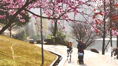 3月2日,市民在繁花似锦的东岳体育公园游玩。 (记者 张保鹏 摄)