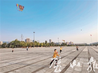 春天来了,鸟语花香,正是放风筝的好时节。3月6日,风和日丽,在人民广场,不少孩子和家长一起在广场上放起了风筝,一路放飞一路欢笑,投入春天的怀抱。图为市民带着孩子在广场上放风筝。