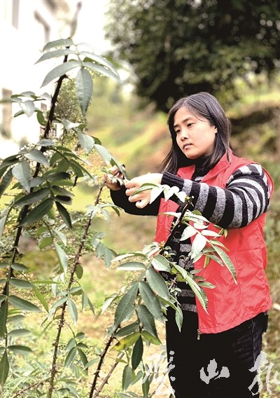 三合镇农技志愿者为村民花椒树修枝(记者 巫秋云 摄)