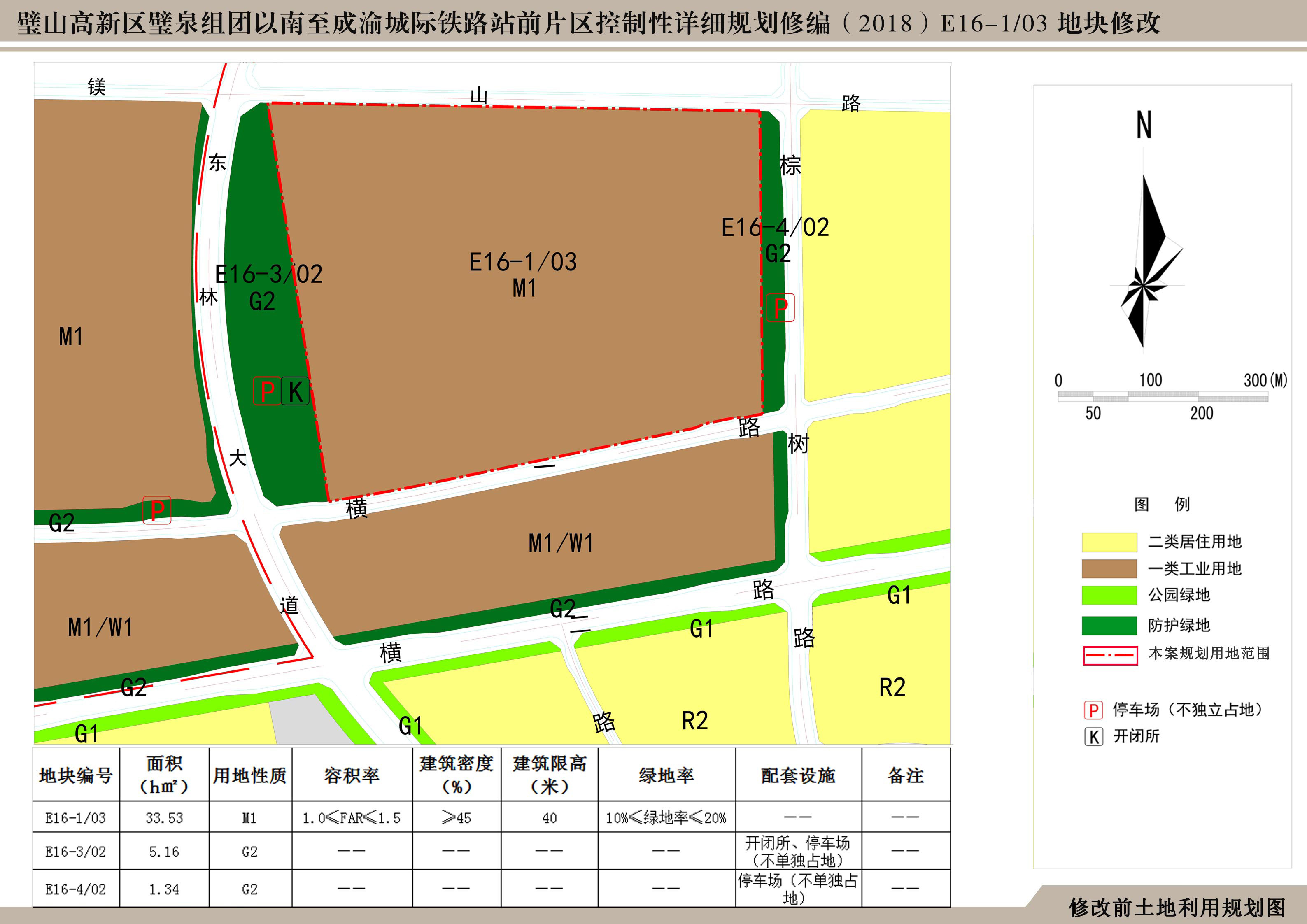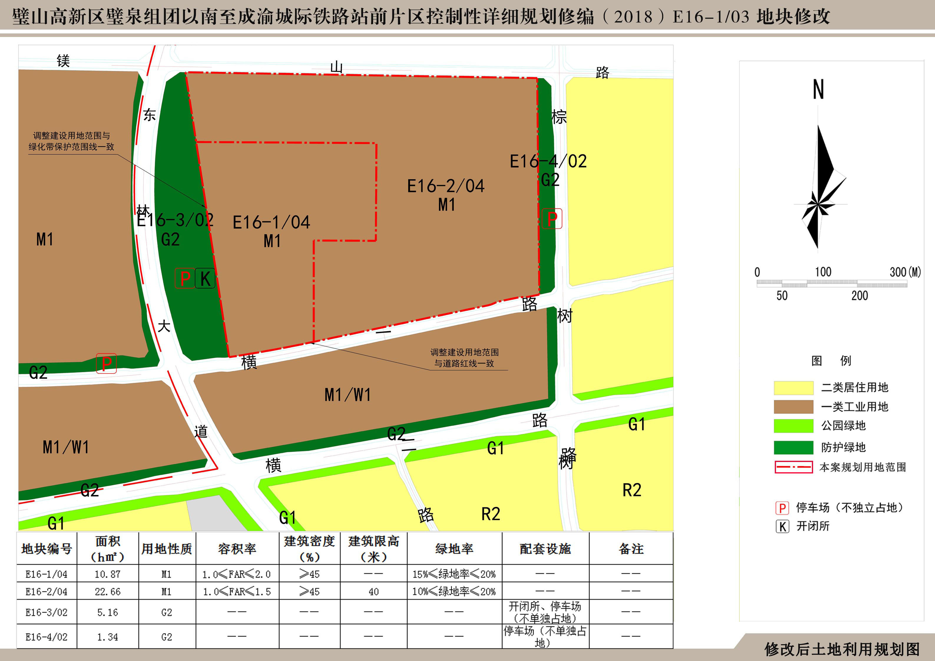 《璧山高新区璧泉组团以南至成渝城际铁路站前片区控制性详细规划修编(2018)》E16-1/03地块修改方案公示