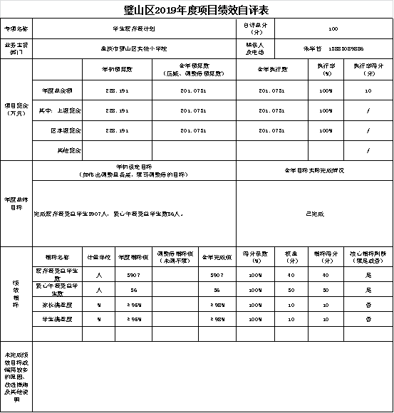重庆市璧山区实验小学校 2019年学生营养餐和爱心午餐项目绩效自评表