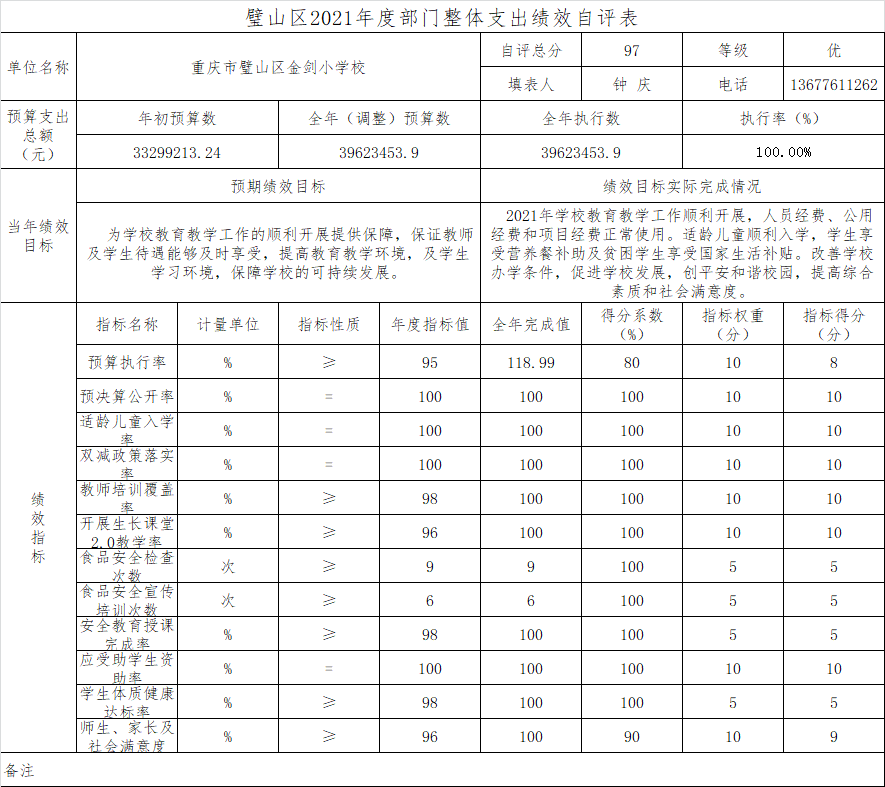(二)绩效自评结果。