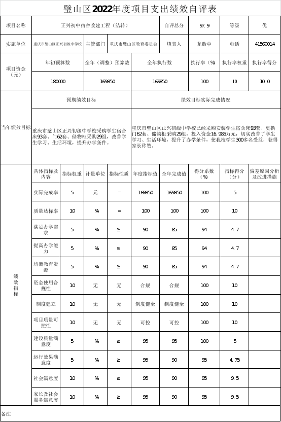项目支出中,正兴初中宿舍改建工程(结转)、正兴初中宿舍及运动场改造工程(结转)两个项目提高了学校的整体形象,改善了学生住宿和运动环境;2022年正兴初中义务教育资助资金项目的实施,解决了生活困难学生的就餐问题,全面提高了学生的就餐质量。项目的实施,体现了政府加强对基础教育发展的投入,使学生及社会充分感受政策带来的优越感和幸福感。
