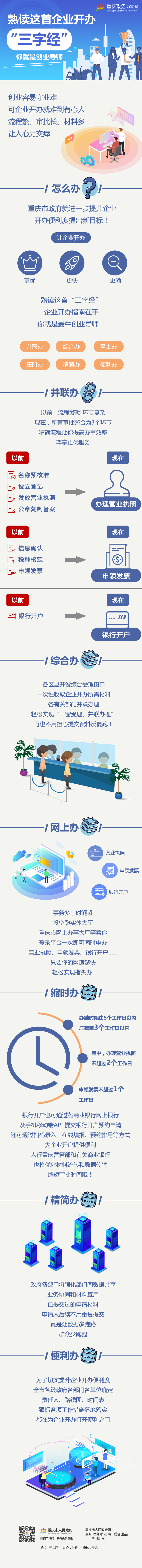 近日,重庆市人民政府办公厅印发《关于进一步提升企业开办便利度的通知》,深入推进“放管服”改革,进一步优化重庆市营商环境,提升企业开办便利度。
