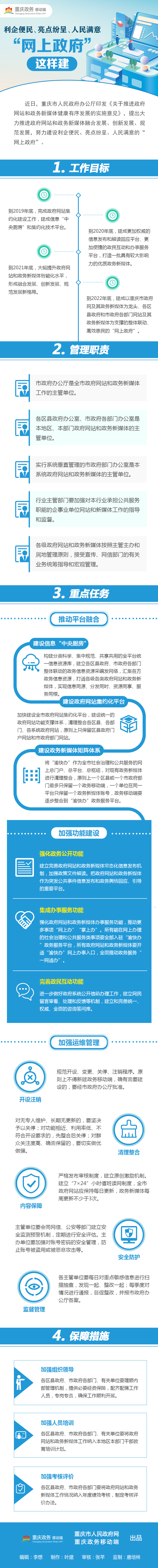 近日,重庆市人民政府办公厅印发《关于推进政府网站和政务新媒体健康有序发展的实施意见》,提出大力推进政府网站和政务新媒体融合发展、创新发展、规范发展,努力建设利企便民、亮点纷呈、人民满意的“网上政府”。