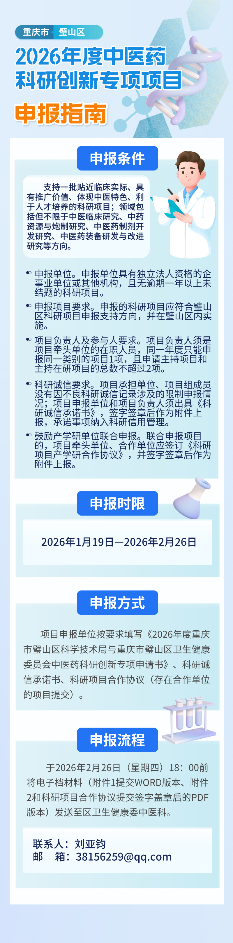重庆市璧山区科学技术局 重庆市璧山区卫生健康委员会关于申报2026年度中医药科研创新专项项目的通知