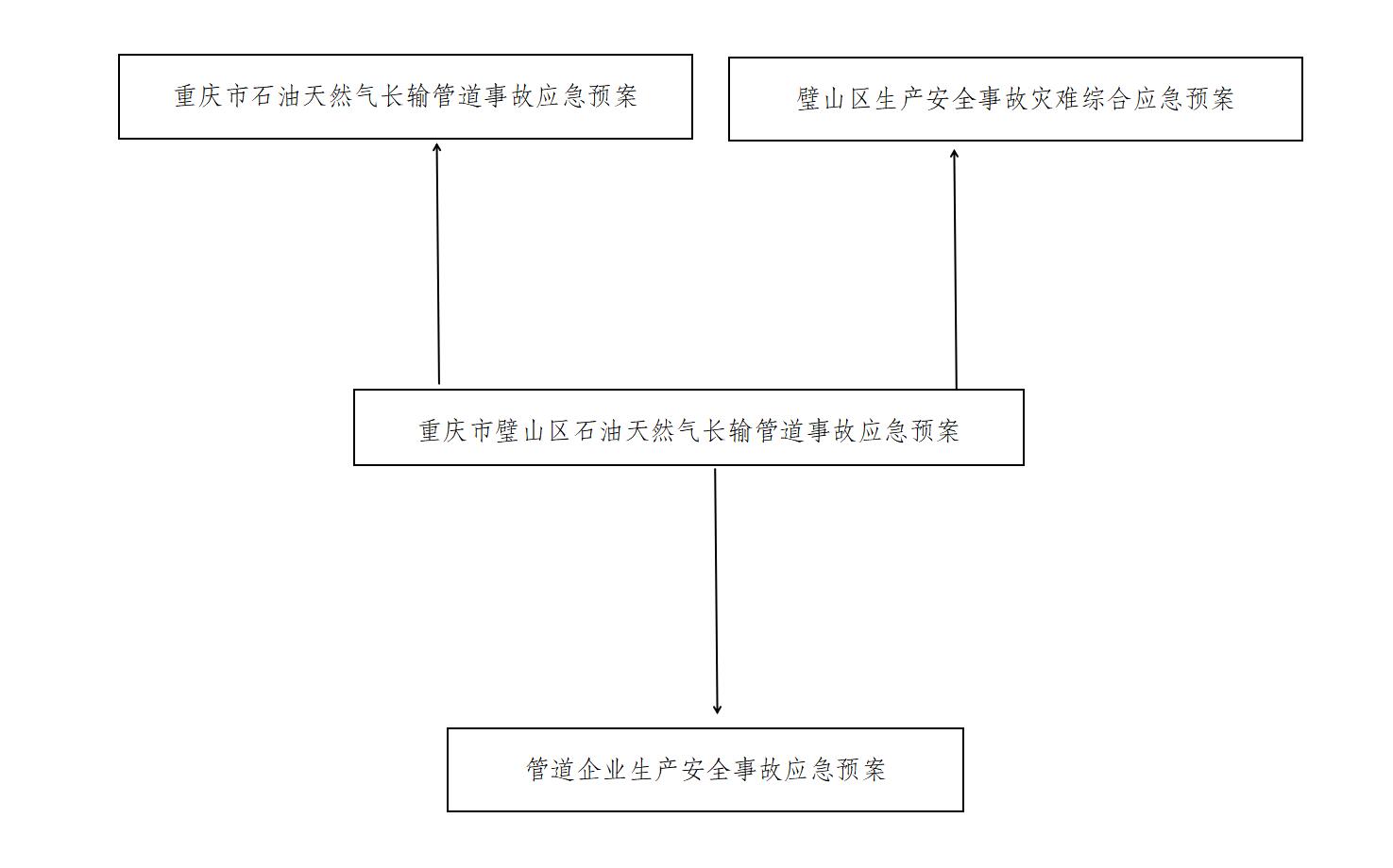 依据《中华人民共和国突发事件应对法》《中华人民共和国安全生产法》《中华人民共和国石油天然气管道保护法》《生产安全事故报告和调查处理条例》《生产安全事故应急条例》《突发事件应急预案管理办法》《重庆市突发事件应对条例》《重庆市安全生产条例》《重庆市突发事件应急预案管理实施办法》《重庆市突发事件预警信息发布管理办法》《重庆市石油天然气长输管道事故应急预案》《重庆市璧山区自然灾害和生产安全事故综合应急预案》等相关法律法规及有关规定,制定本预案。