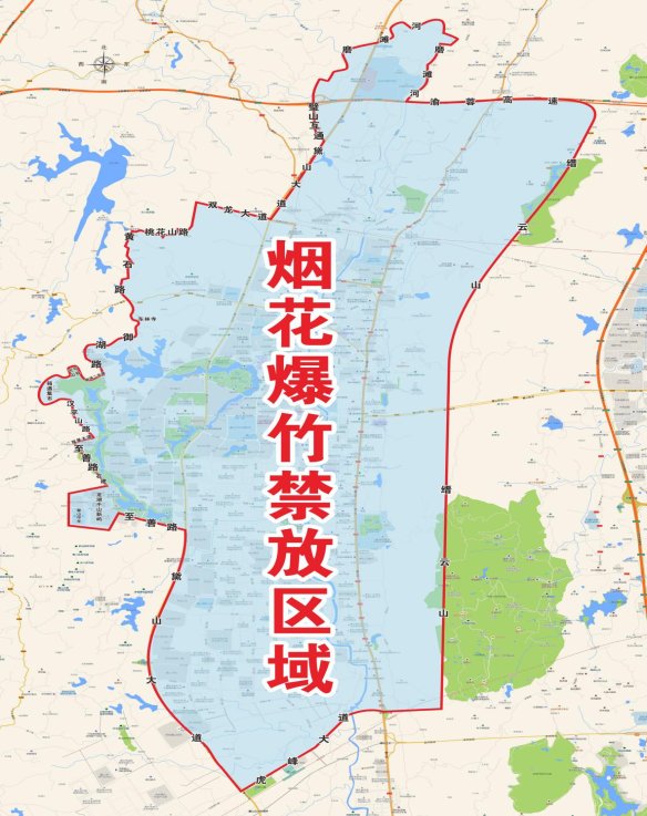 (一)禁放区域:渝蓉高速璧山互通→磨滩河→渝蓉高速以南,缙云山脉以西,虎峰大道以北,黛山大道→至善路(包括龙湖千山新屿、璧山中学枫香湖校区)→双星大道→汉平山路(包括“箱遇集市”)→御湖二支路(包括“可可山谷”)→御湖路→东林寺→黄石路→桃花山路→双龙大道→黛山大道以东,所形成的闭环区域(含公路及两侧的居民住宅、商场、集市等建筑物)划定为禁放区域(政府设置的祭祀燃放点除外)。