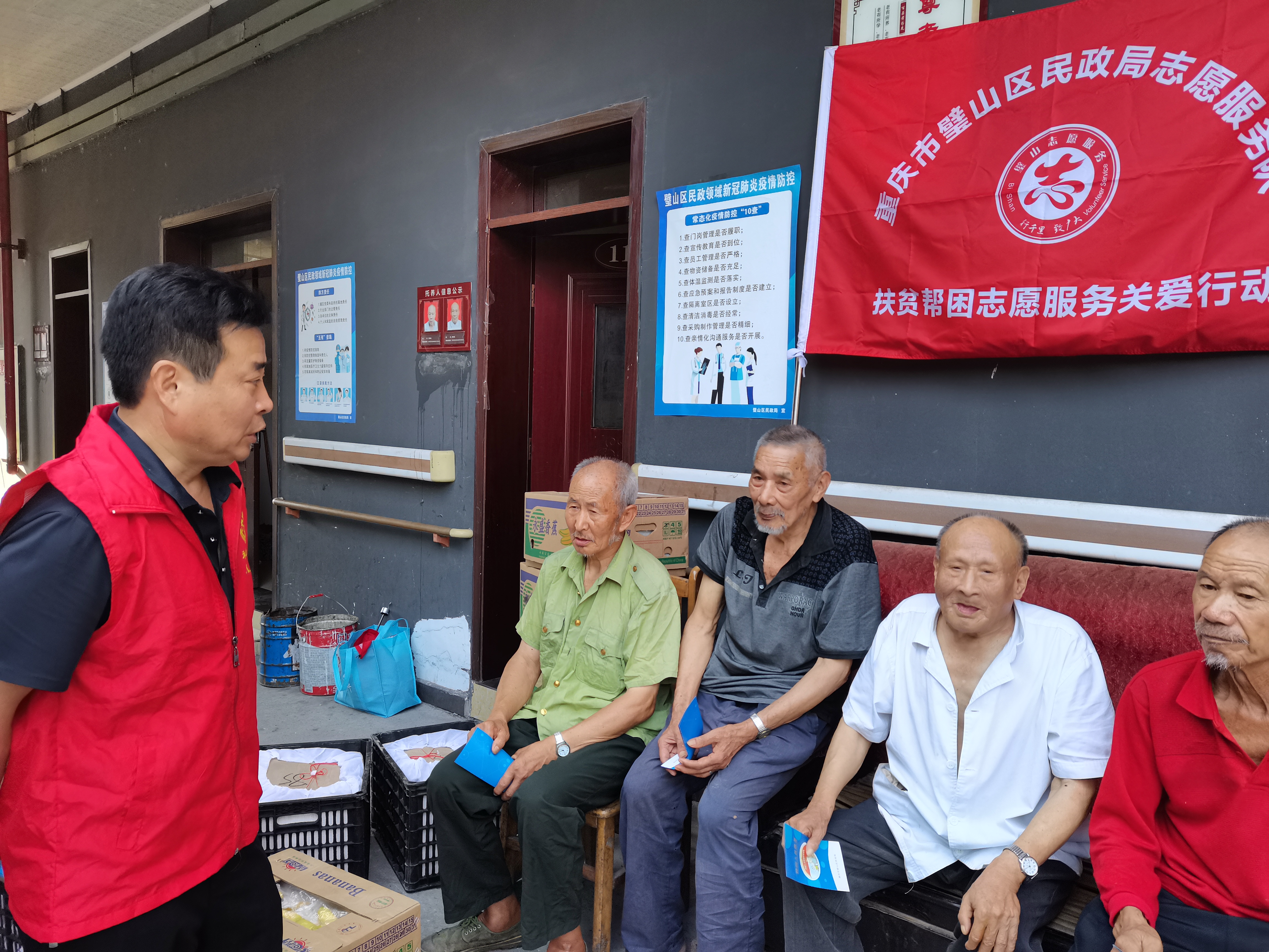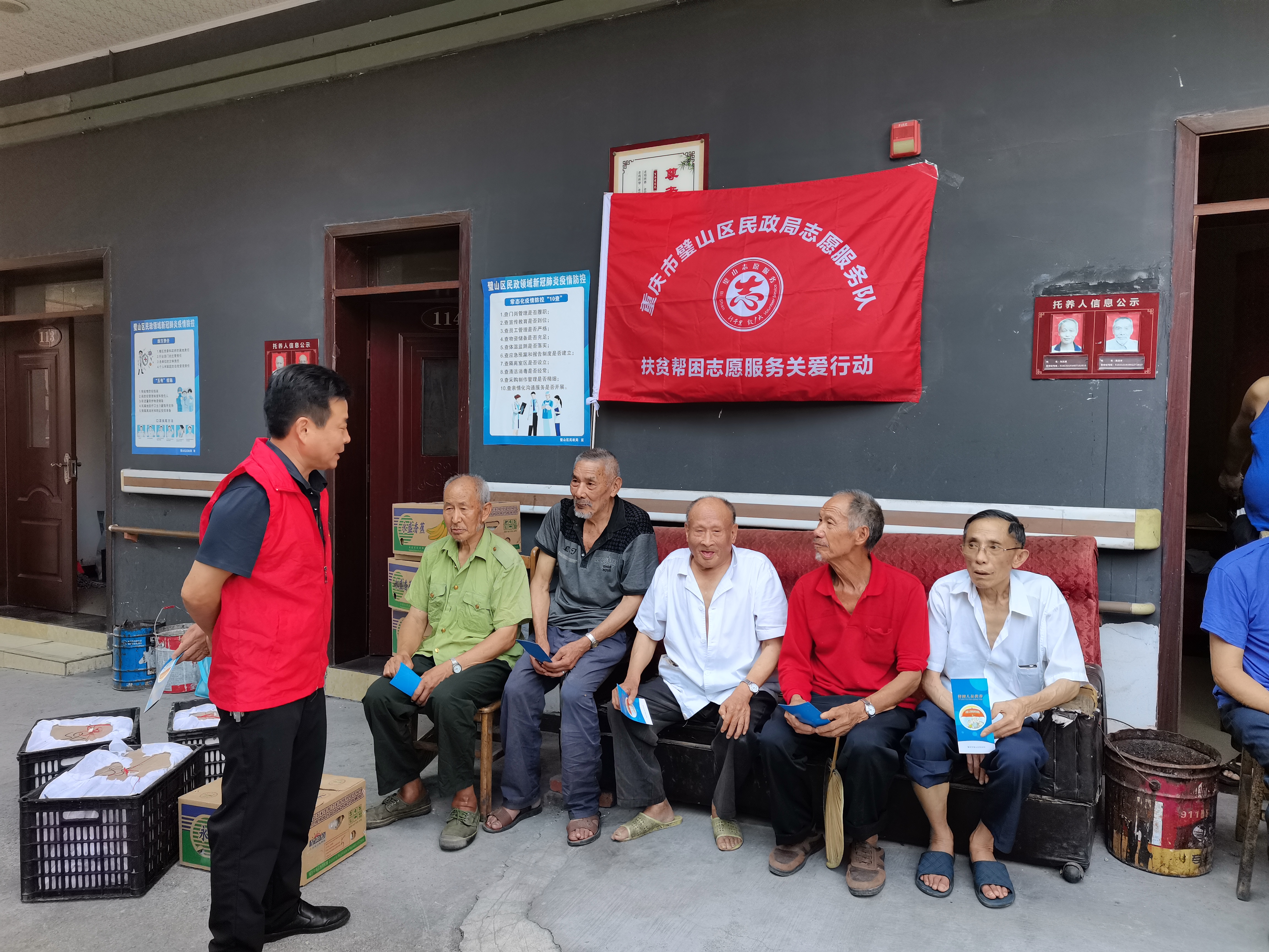 2021年9月26日,璧山区民政局分管副局长带队前往璧山区来凤街道敬老院,向在院集中供养的68位特困老人送去了时令水果,并就特困供养人员关注的生活、医疗等民政领域社会救助政策进行宣讲。