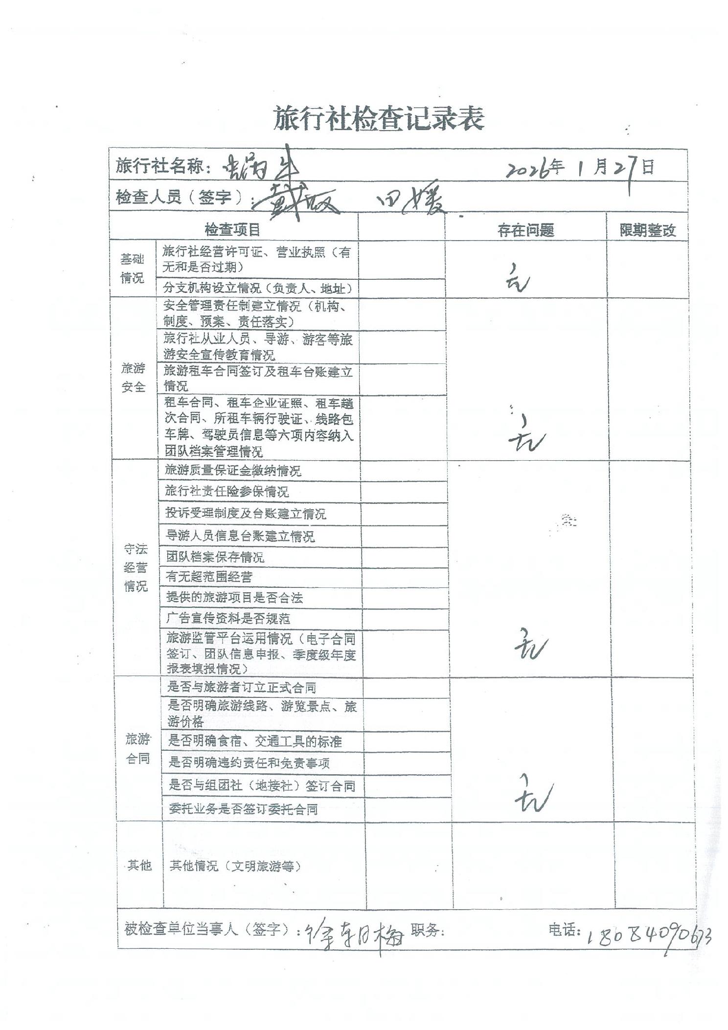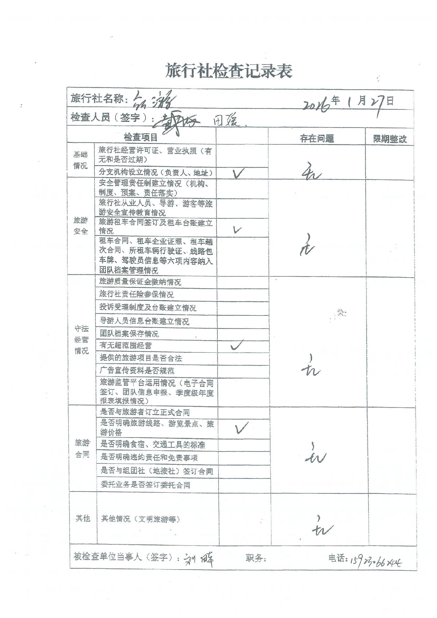 对旅行社、导游、 在线旅游经营者的随机抽查