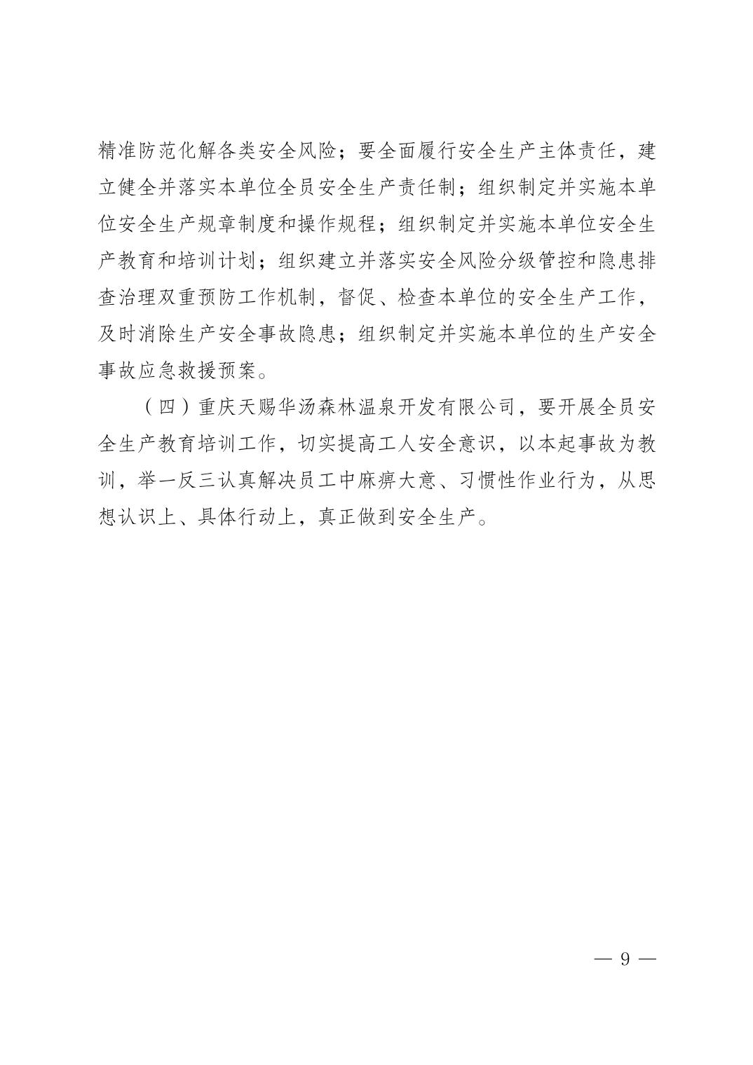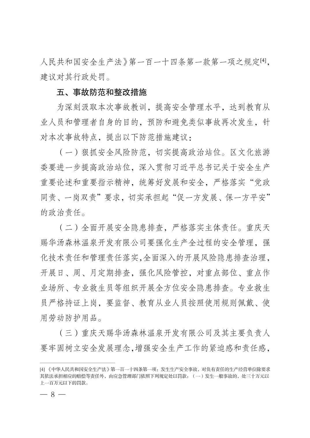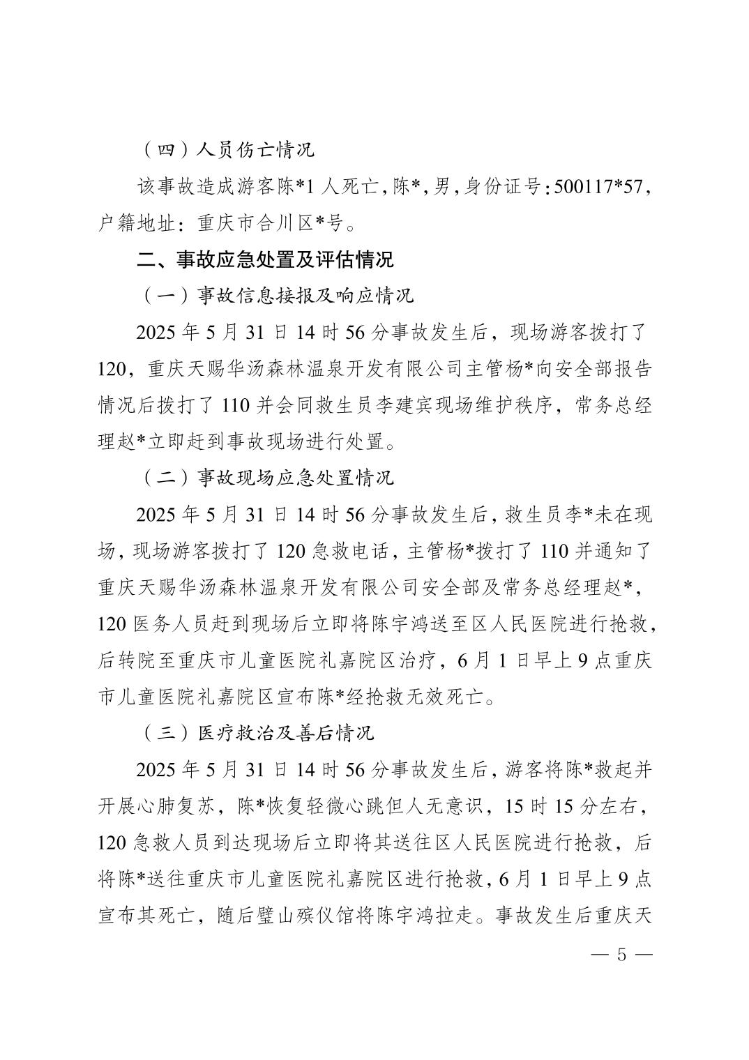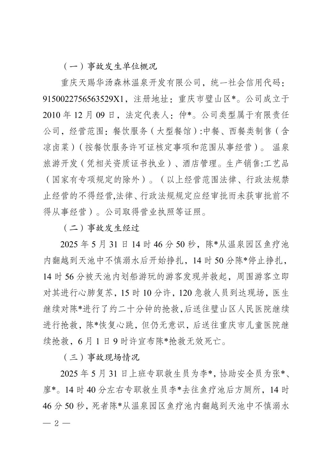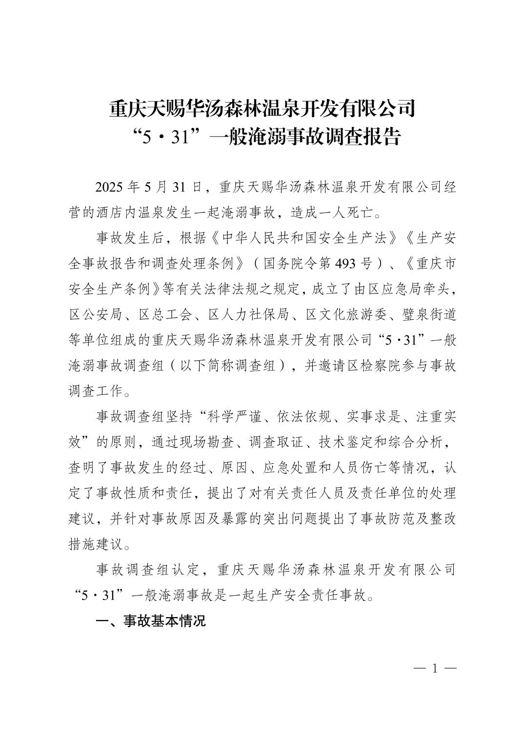 重庆天赐华汤森林温泉开发有限公司“5·31”一般淹溺事故调查报告
