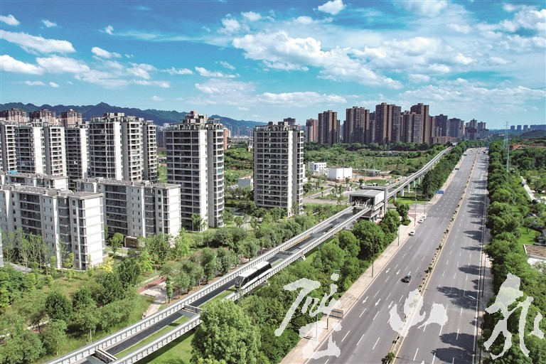 7月15日,“空中巴士”——“云巴”穿行城区。“云巴”项目为全球首条云巴示范线,途经多个公园站,市民乘车时可饱览窗外生态美景。在“云巴”基础上,我区打造了“云巴+公交+慢行”三网融合绿色交通体系。同时,我区还推广应用新能源和清洁能源,提高绿色交通能效水平,促进公共交通运输更加绿色低碳、节能环保。