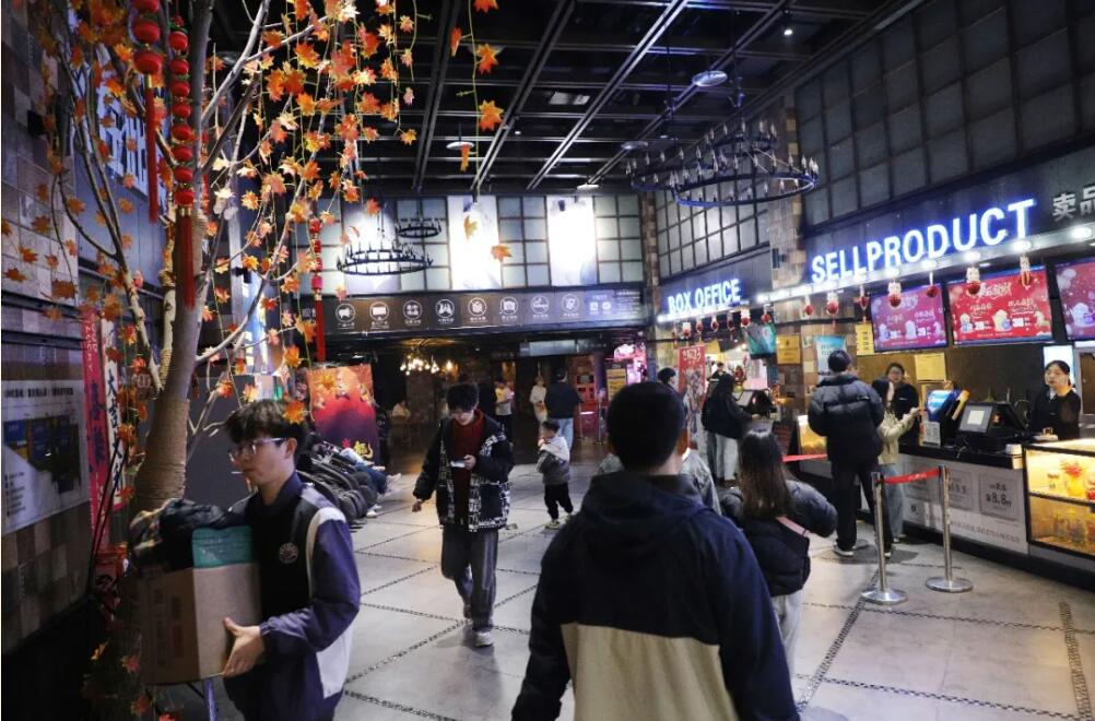 与此同时,观影成为璧山市民新春团圆的热门选择,UME影城璧山店节日氛围浓厚,售票处、取票机前有序排队,休息区和检票口人流络绎不绝。