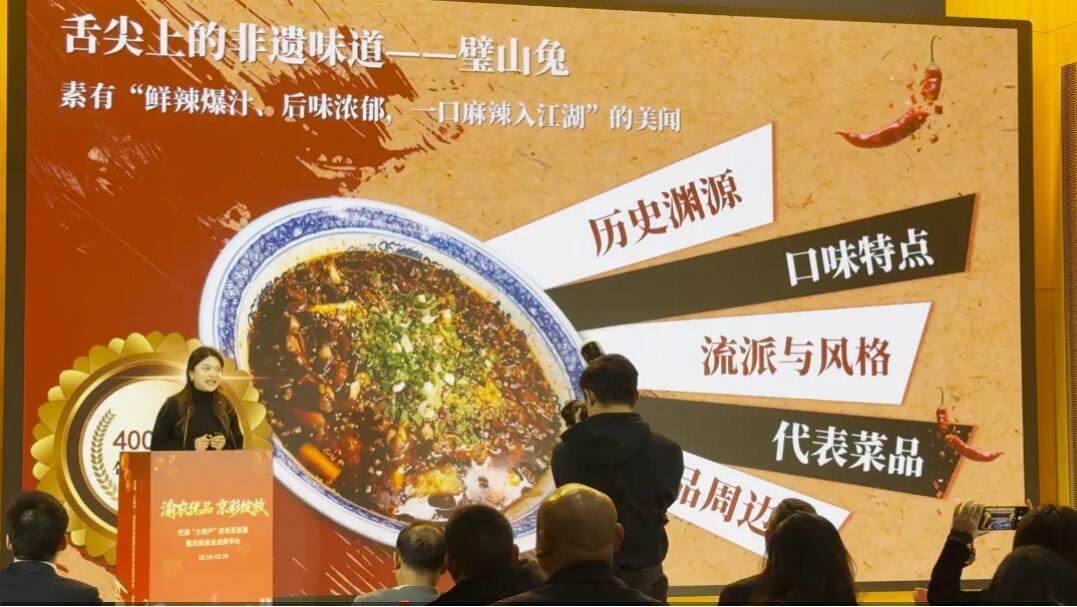 12月19日,“渝农优品・京彩绽放——巴渝‘土特产’名优百品暨重庆美食走进新华社”北京专场推介会隆重举行,来自重庆8个区县的特色产品集中亮相,通过展示推介、合作签约、授牌表彰等环节,让更多朋友认识巴渝特产、品味重庆味道、爱上山水之城,推动渝京两地在特色产业、商贸流通等领域实现资源共享、优势互补、共赢发展。璧山区特色美食“璧山兔”精彩登场,重庆市璧山好礼旅游商品中心、重庆市璧山区大江龙餐饮有限公司获授牌表彰,成为本次活动的一大亮点。