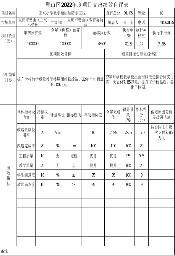项目支出中教学楼屋顶防水工程的实施,提升了学校品质,美化了校园。全面提高了学校育人环境。