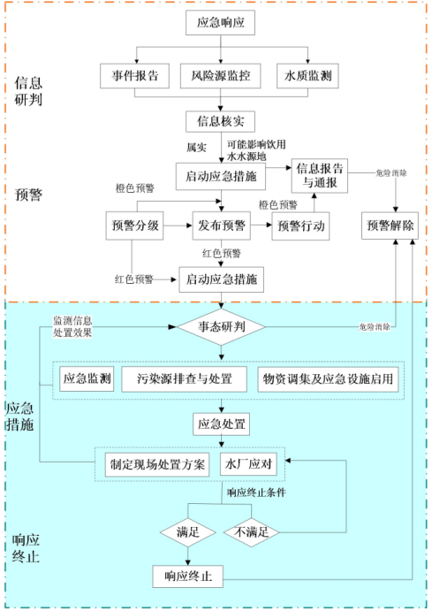 供水单位应根据实际情况启动《供水单位突发环境事件应急预案》;各涉事单位应启动相关突发环境事件应急预案进行应急处置。